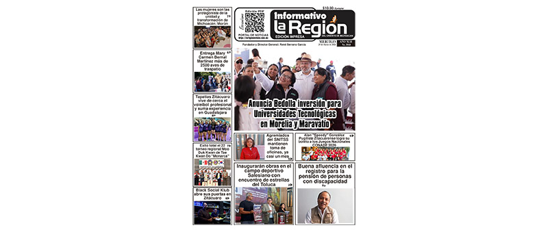 PDF | Informativo Periódico La Región No. 3068 – Miércoles 25 de Marzo de 2026 Noticias #Zitácuaro, #Michoacán, #Morelia. Publicada el 25 marzo, 202624 marzo, 2026 por admin Seguir leyendo