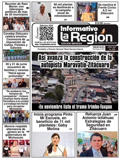 Lea SIN COSTO la Edición impresa digital del Periódico La Región No. 2990 Miércoles 18 de Junio de 2025 Noticias #Zitácuaro, #Michoacán, #Morelia