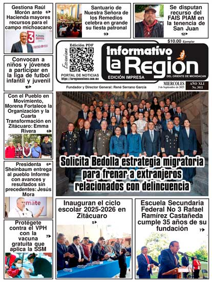 Lea SIN COSTO la Edición impresa digital del Periódico La Región No. 3011 – Miércoles 3 de Septiembre de 2025 Noticias #Zitácuaro, #Michoacán, #Morelia