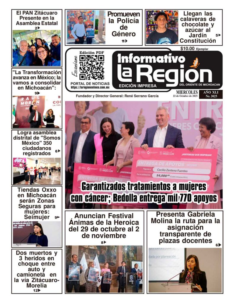 Lea SIN COSTO la Edición impresa digital del Periódico La Región No. 3025 – Miércoles 22 de Octubre de 2025 Noticias #Zitácuaro, #Michoacán, #Morelia
