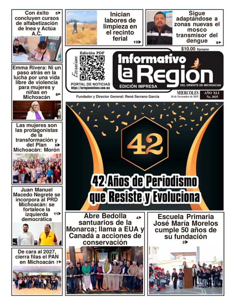 Lea SIN COSTO la Edición impresa digital del Periódico La Región No. 3035 – Miércoles 26 de Noviembre de 2025 Noticias #Zitácuaro, #Michoacán, #Morelia.