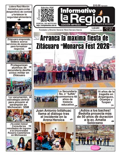 PDF | Informativo Periódico La Región No. 3055 – Sábado 7 de Febrero de 2026 Noticias #Zitácuaro, #Michoacán, #Morelia.