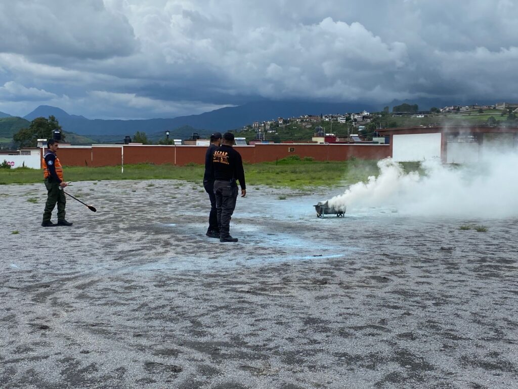 extintores, conformación de brigadas contra incendios y procedimientos de búsqueda y rescate dentro del plantel. Según los instructores, el objetivo es que cada integrante de la escuela sea capaz de actuar con rapidez durante los primeros minutos críticos de una emergencia.